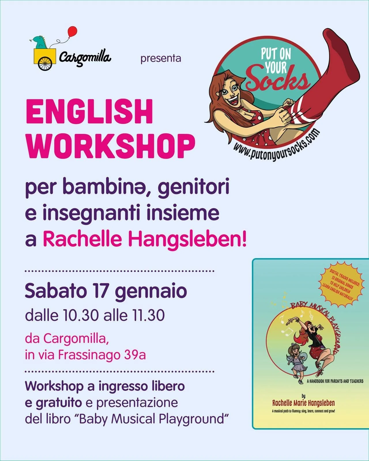 Baby Musical Playground is a joyful, music-based English learning program created by educator and musician Rachelle Hangsleben in Bologna, Italy.
